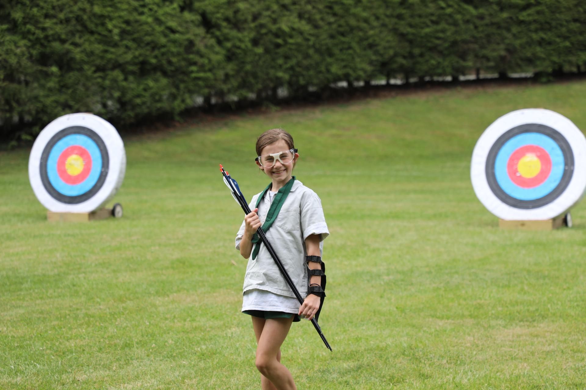 Young girls get to learn the basic skills of archery, developing the focus, skill, and aim to achieve bullseyes!